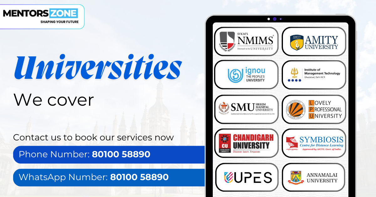 At Mentors Zone, we provide professional personal tuition and tutorial services for thesis, dissertations, projects, and assignments for students of all universities across India. Whether you are pursuing an MBA, BBA, BCA, or any other graduate and post-graduate program, we are here to guide you at every step of your academic journey.
